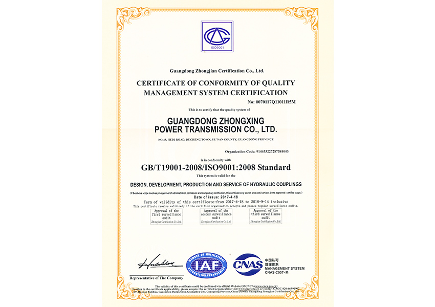 公司1998年開(kāi)始執(zhí)行質(zhì)量管理體系,先后通過(guò)ISO9001:1994、ISO9001:2000、ISO9001:2008、ISO9001:2015質(zhì)量管理體系認(rèn)證,貫徹“質(zhì)量為本、信譽(yù)至上、服務(wù)優(yōu)質(zhì)、顧客滿(mǎn)意、持續(xù)改進(jìn)、創(chuàng)新發(fā)展” 的質(zhì)量方針。公司先后通過(guò)二級(jí)計(jì)量體系認(rèn)證、產(chǎn)品安全標(biāo)志認(rèn)證、煤礦礦用安全標(biāo)志認(rèn)證、防爆認(rèn)證等。隨著公司的快速發(fā)展,公司近年獲得國(guó)家、省、市、縣的各種榮譽(yù)稱(chēng)號(hào):高新科技企業(yè)、科技型中小企業(yè)、廣東省優(yōu)秀高新技術(shù)企業(yè)、廣東省和中國(guó)優(yōu)秀民營(yíng)科技企業(yè)、廣東省首批A級(jí)信用納稅單位、廣東省“守合同重信用企業(yè)”、云浮市重點(diǎn)民營(yíng)企業(yè)、云浮市和郁南縣“十強(qiáng)”民營(yíng)企業(yè)、郁南縣明星企業(yè)一等獎(jiǎng)等。被列為省中小企業(yè)局重點(diǎn)聯(lián)系單位、省現(xiàn)代企業(yè)制度試點(diǎn)單位。廣東省液力傳動(dòng)工程技術(shù)研究開(kāi)發(fā)中心獲廣東省優(yōu)秀工程技術(shù)研究開(kāi)發(fā)中心稱(chēng)號(hào),先后通過(guò)廣東省知識(shí)產(chǎn)權(quán)優(yōu)勢(shì)企業(yè)、廣東省創(chuàng)新型企業(yè)認(rèn)定、廣東省戰(zhàn)略性新興產(chǎn)業(yè)骨干企業(yè)認(rèn)定,獲得中國(guó)液壓液力氣動(dòng)密封行業(yè)技術(shù)創(chuàng)新先進(jìn)單位,獲得廣東省優(yōu)秀企業(yè),液壓液力氣動(dòng)密封行業(yè)液力分會(huì)優(yōu)秀理事單位。